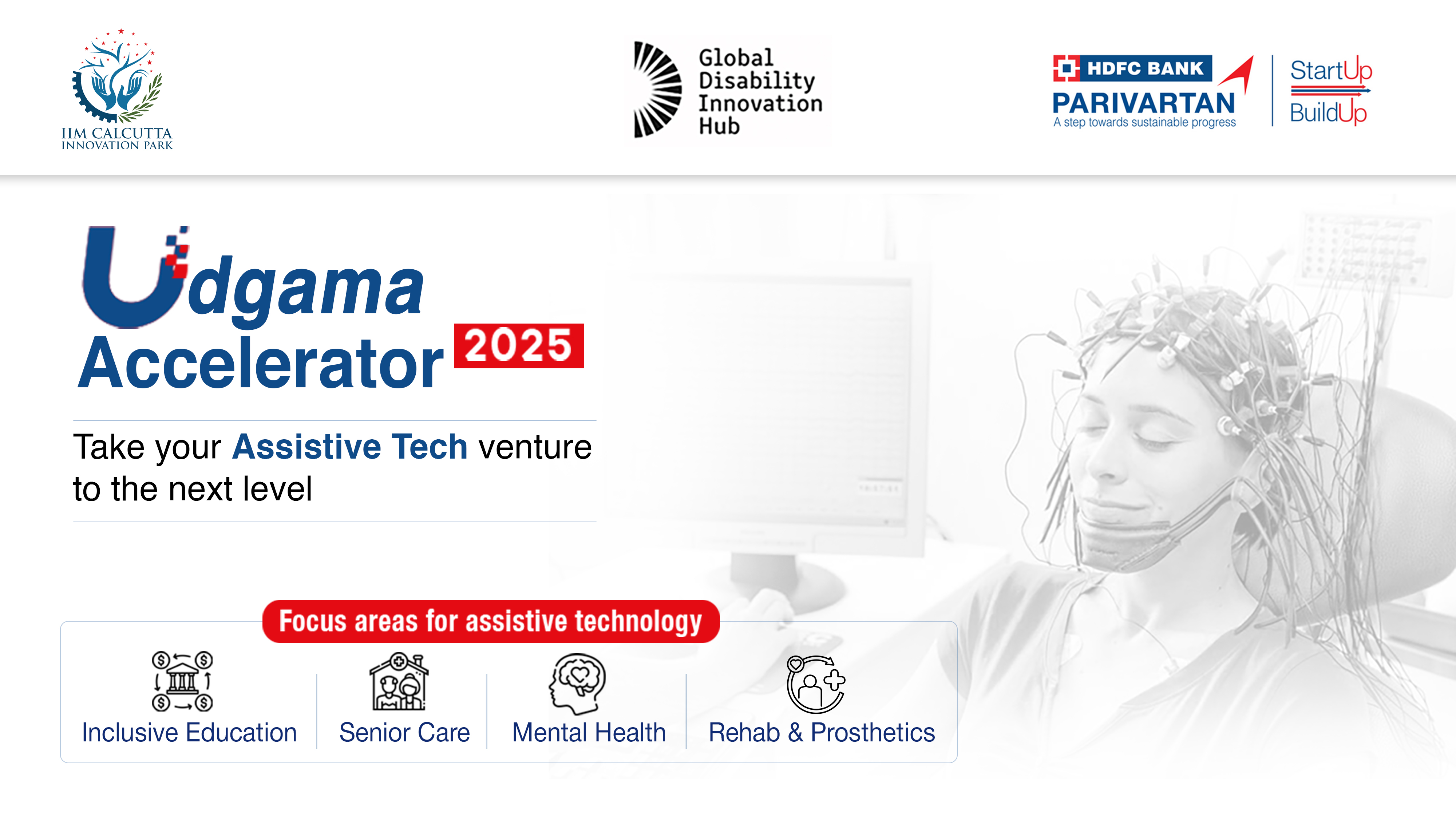 IIM Calcutta Innovation Park in partnership with HDFC Parivartan and Global Disability Innovation Hub (GDIH) introduces the Udgama Accelerator 2025 program to support revenue stage startups from Assistive Technology domain with knowledge, grant and connects.